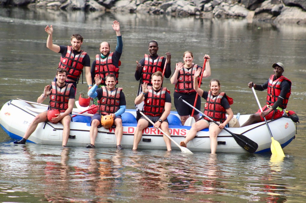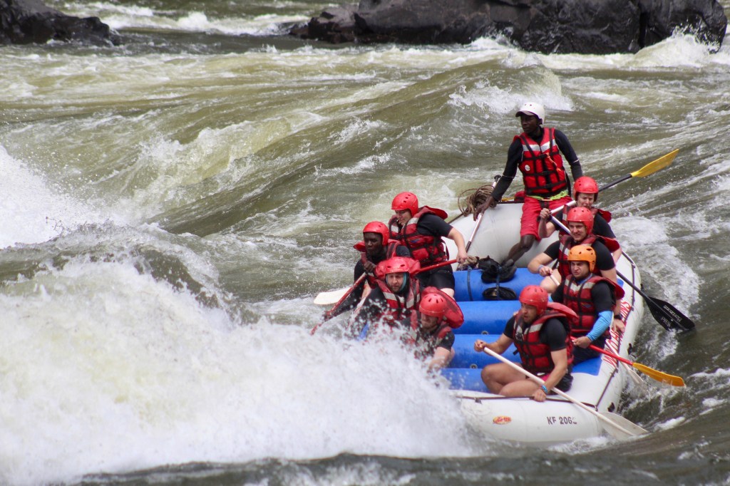 The Zambezi River below Victoria Falls is known to be one of the best places in the world for class V whitewater rafting. With some of the rapids sporting names like “Stairway to Heaven” and “The Gnashing Jaws of Death”, this experience is not for the faint of heart. According to my husband, John, part of the adventure is hiking down the steep trail down to Bakota Gorge, and then helping to carry the oars and equipment back up again at the end. (He was humbled by the guides who scaled the way back up lugging the rafts–barefoot–and in half the time.)